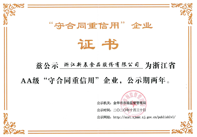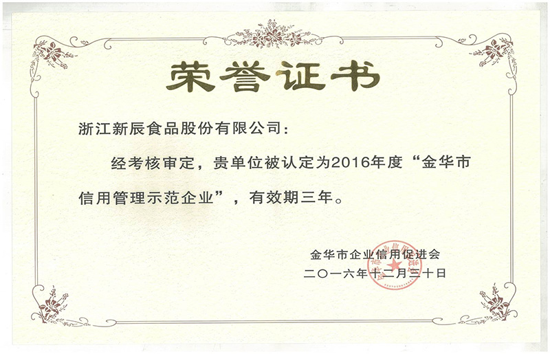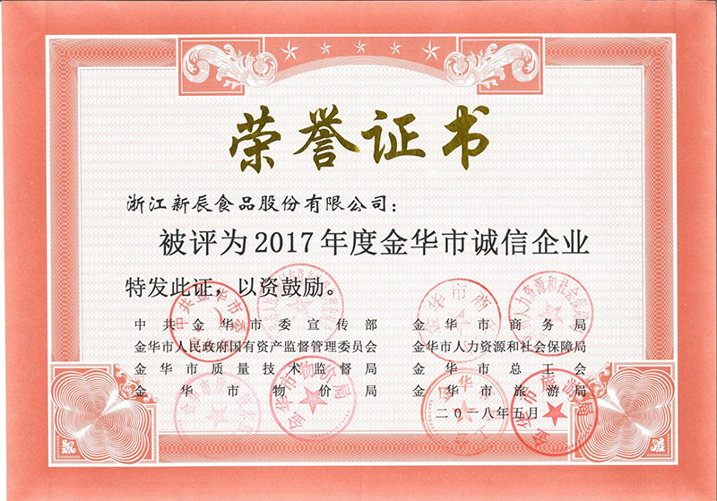 被評為2017年度“金華市誠信企業”,“區重點骨干工業企業”,“浙江省級骨干農業龍頭企業”