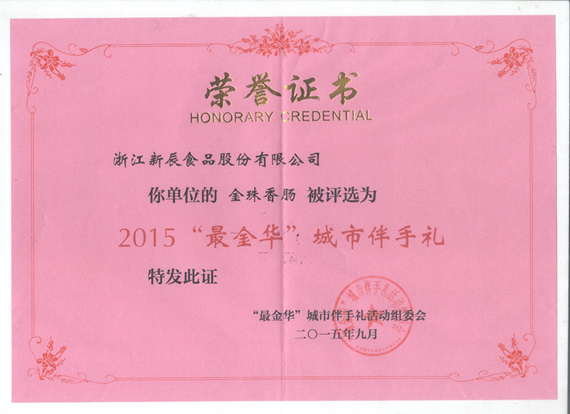 9月“金珠香腸”被評選為2015年度“城市伴手禮”