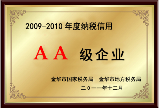 榮獲2009-2010年度納稅信用“aa級企業”,“范本建設單位”